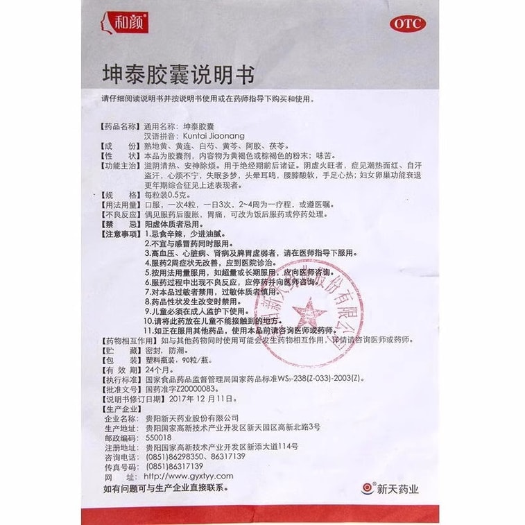 KunTai Capsules 180 capsules. Irritated mind, insomnia, dizziness. Decline in ovarian function in women. | Yami
