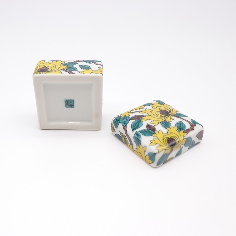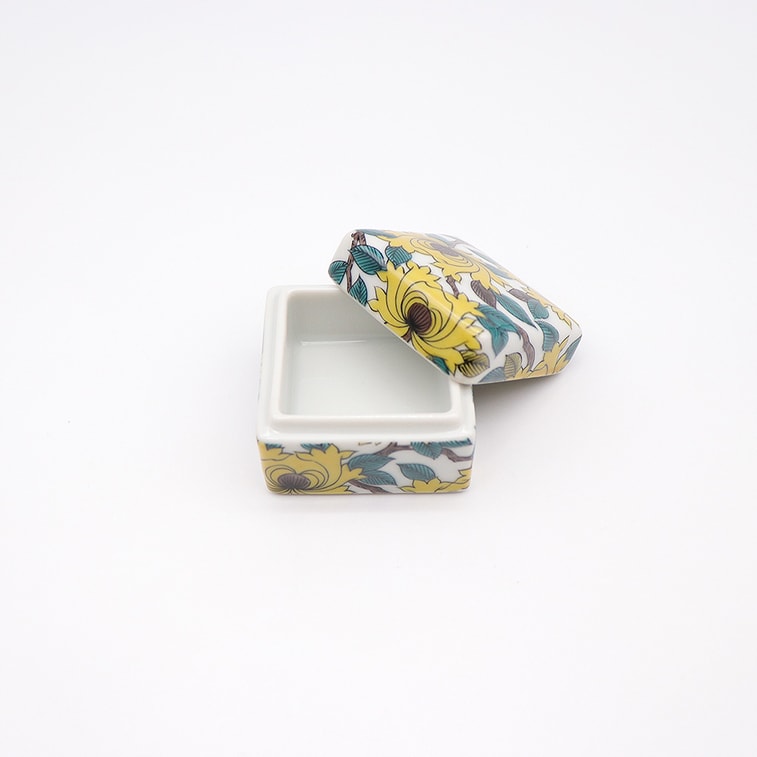 Japan Kutani Ware Handmade Small Box (Yellow peony 2.12 x 1.77 inch)