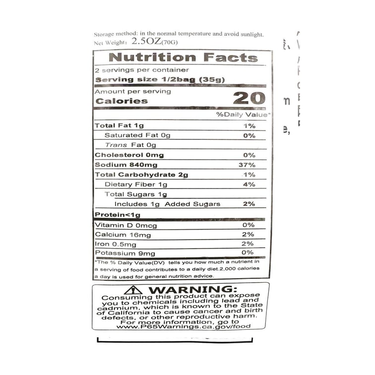 *Disclaimer:Nutrition info is based on product packaging and for reference only. Content may vary due to version, language, or image differences. Please check the actual package. For questions on ingredients, allergens, or suitability, read the label or contact support.