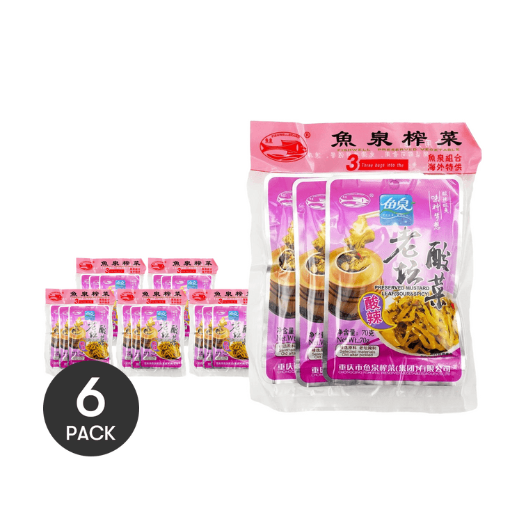 Laotan Pickled Chinese Cabbage ,Hot and Sour Flavor, 7.4 oz *6【6 Packs】