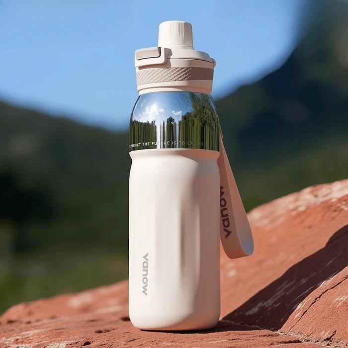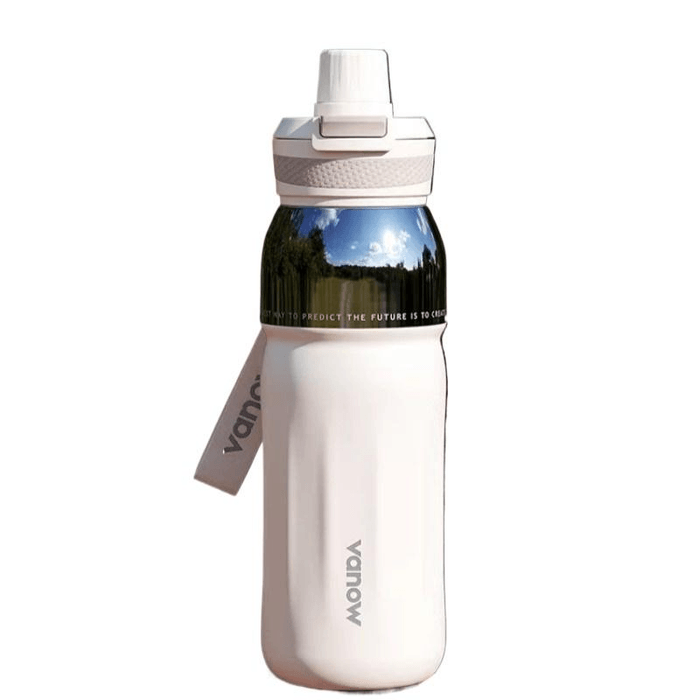 Large Capacity Thermos Cup Sports Water Bottle Outdoor Kettle Cloud White 580ml | Yami