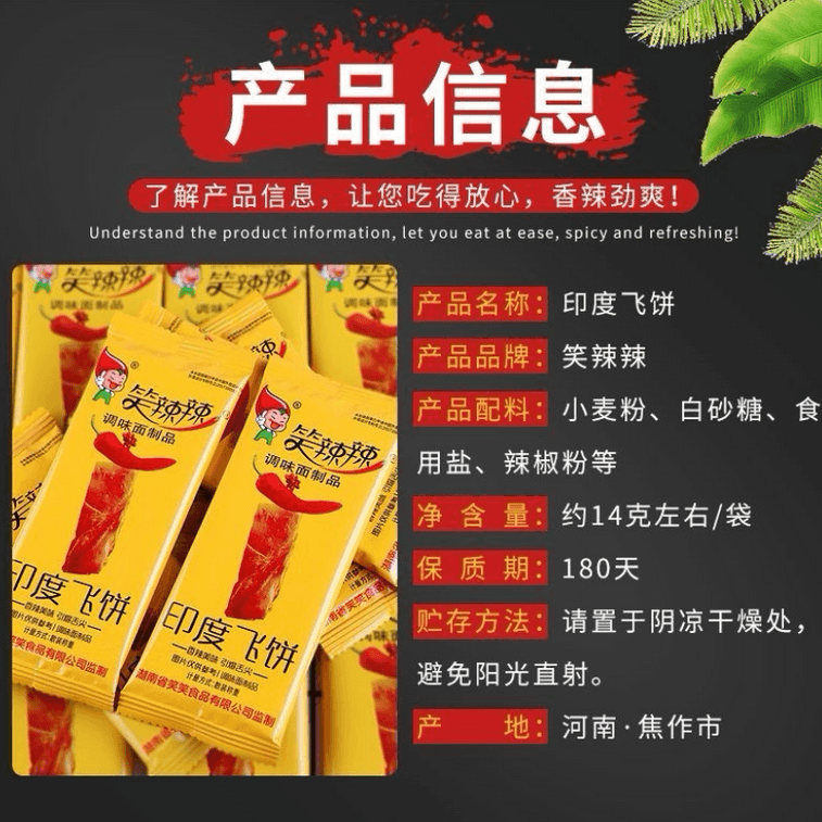 Laughing Spicy Indian Flying Pancake Spicy Strips Dry Spicy Slices Hard Crispy Large Spicy Slices Vintage Childhood Nostalgic Leisure Snacks 14g * 10 packs | Yami