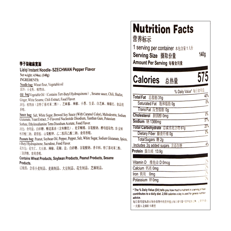 Sichuan Pepper Instant Noodles - from Ziqi Li, 4.94oz