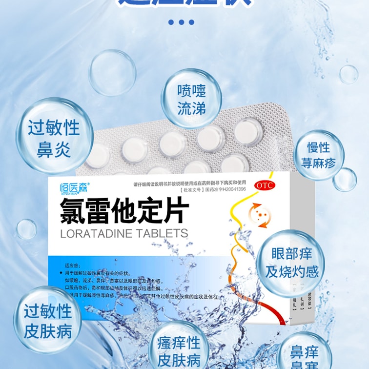 Loratadine Tablets Urticaria Allergy Medicine Allergic Rhinitis Skin Itching Anti-Allergy 14 Tablets/Box