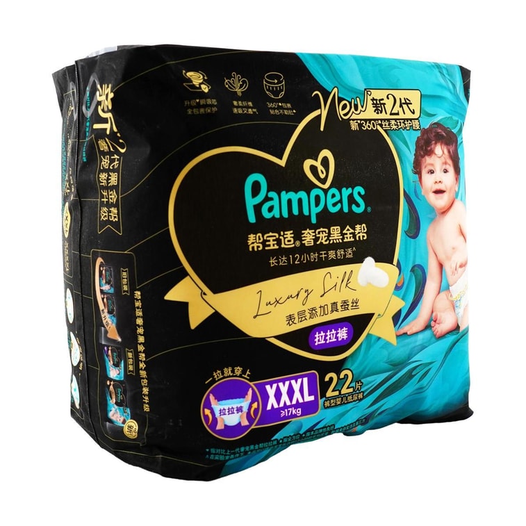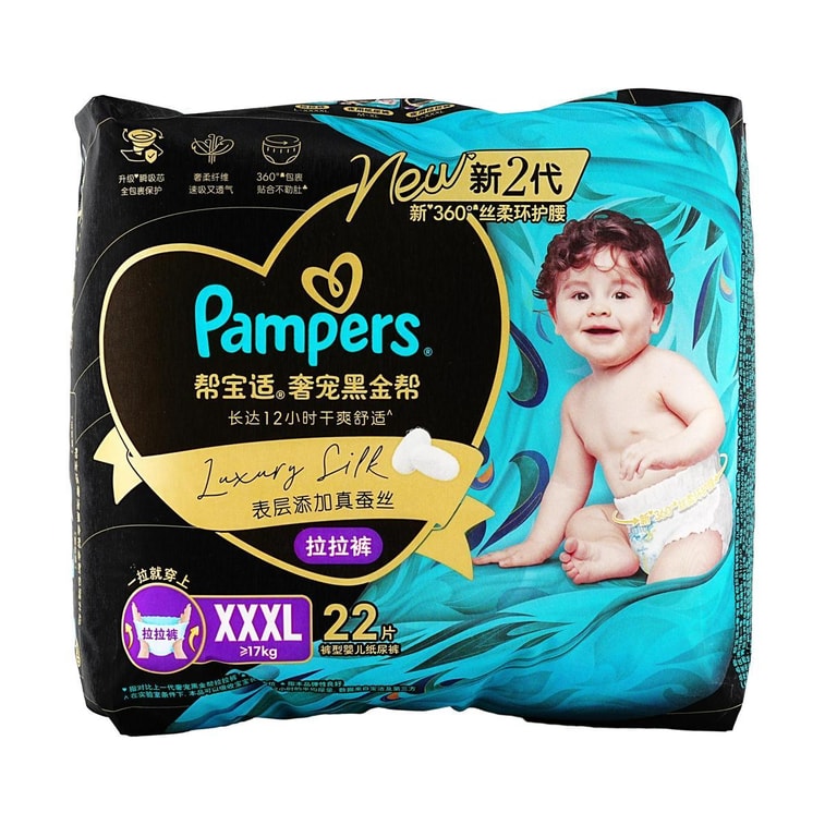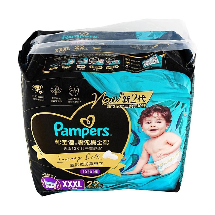 PAMPERS Luxury Black Gold Help Silk Ultra-thin Breathable Pull-up Pants Diapers XXXL Size 22 Pieces