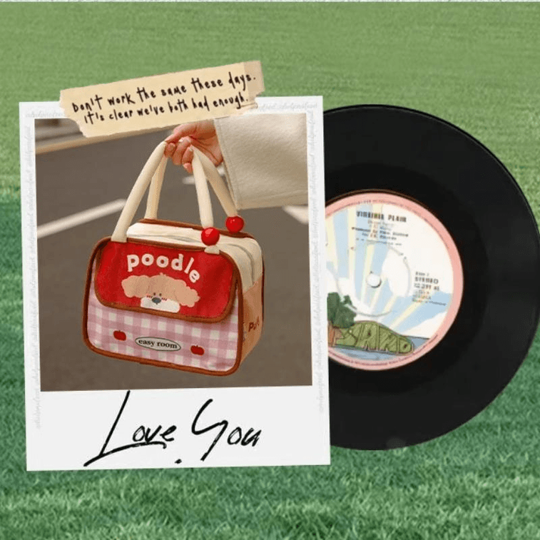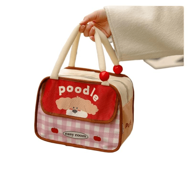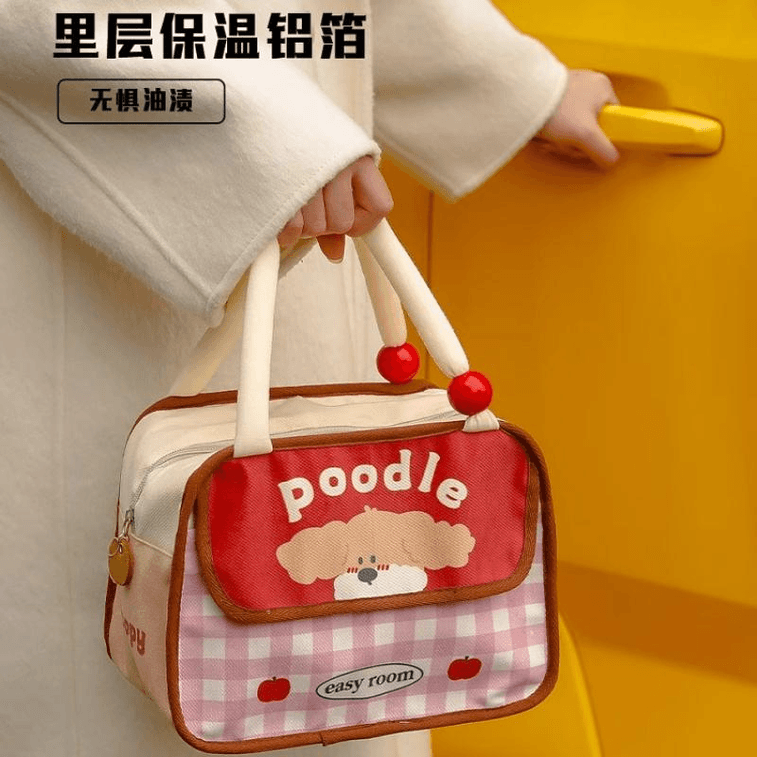 Magic Sticker Pink Grid Curly Dog Thermal Bag Handheld Portable Thermal Bag 23 * 15 * 20cm * 1 Piece