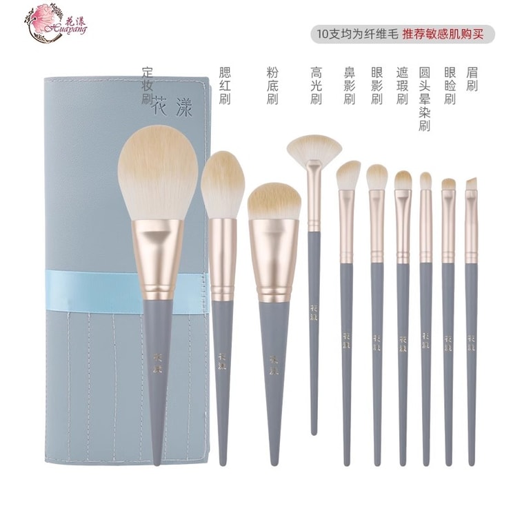 Makeup Brush Set Brushes Cangzhou Soft Loose Powder Brush Eyeshadow Haze Blue 10Pcs | Yami
