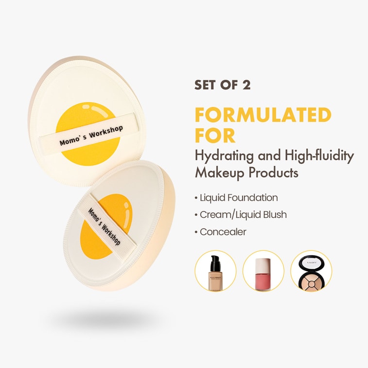 Sunny Egg Marshmallow Puff High-density Rubycell 3-Finger Grip Creamy Finish For All Foundations 2pcs
