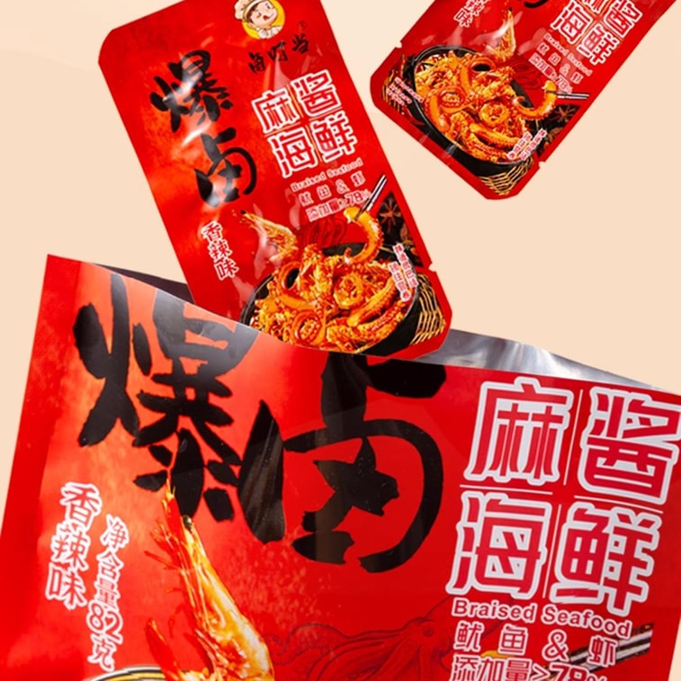 Marinated Seafood With Sesame Sauce,Ready-To-Eat Squid And Shrimp,Spicy+Original Flavor 2.9 oz*2【2 Flavor Combo Packs】