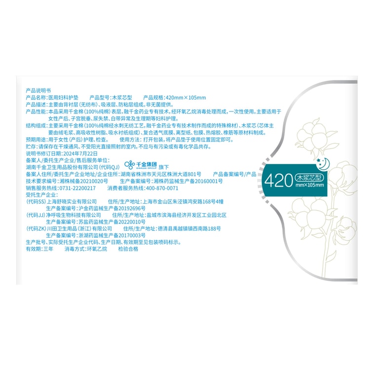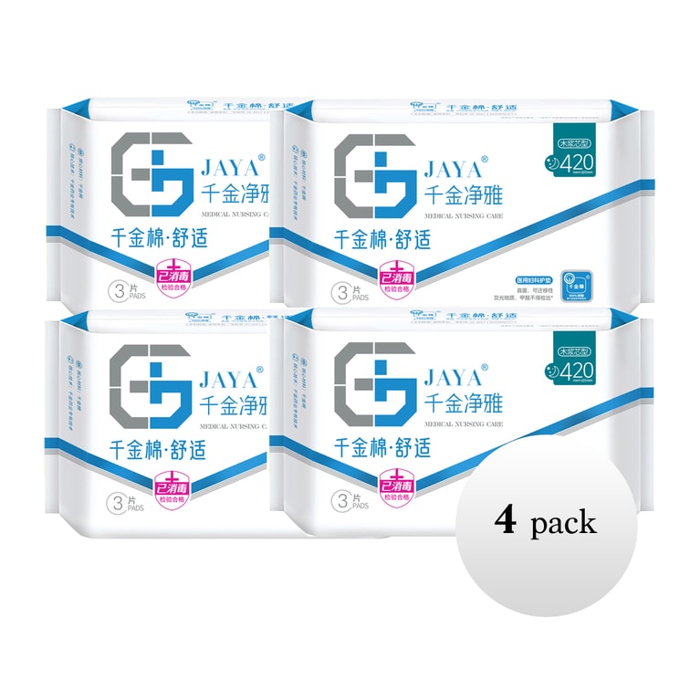 Medical-Grade Cotton Extra Soft Extra Long Overnight Sanitary Pads 420mm (4 Packs 12 Pads Total)