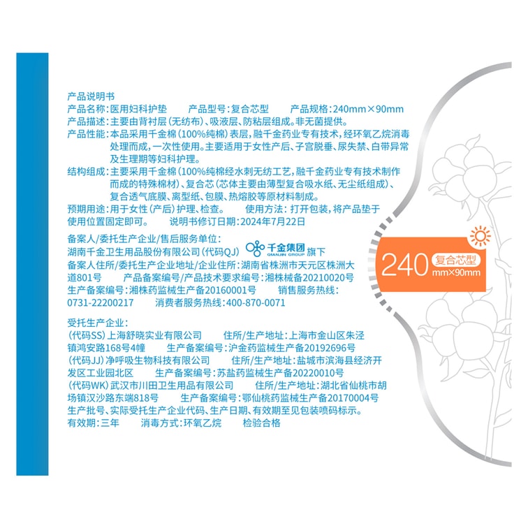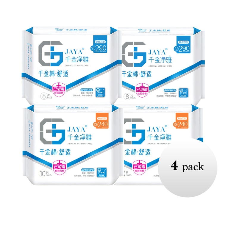 Medical-Grade Cotton Sensitive Skin Daily Pads Skin-Friendly Breathable Sanitary Pads 240mm +290mm(4Packs 32 Pads)