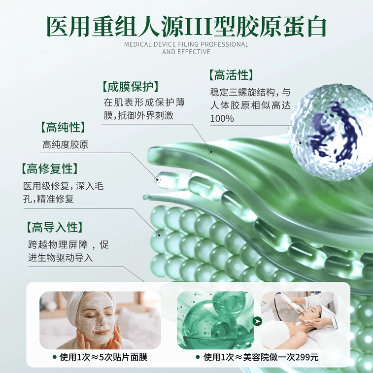 Medical recombinant human collagen Type III skin repair care film Light law grain artifact [Small Red Book highly recomm