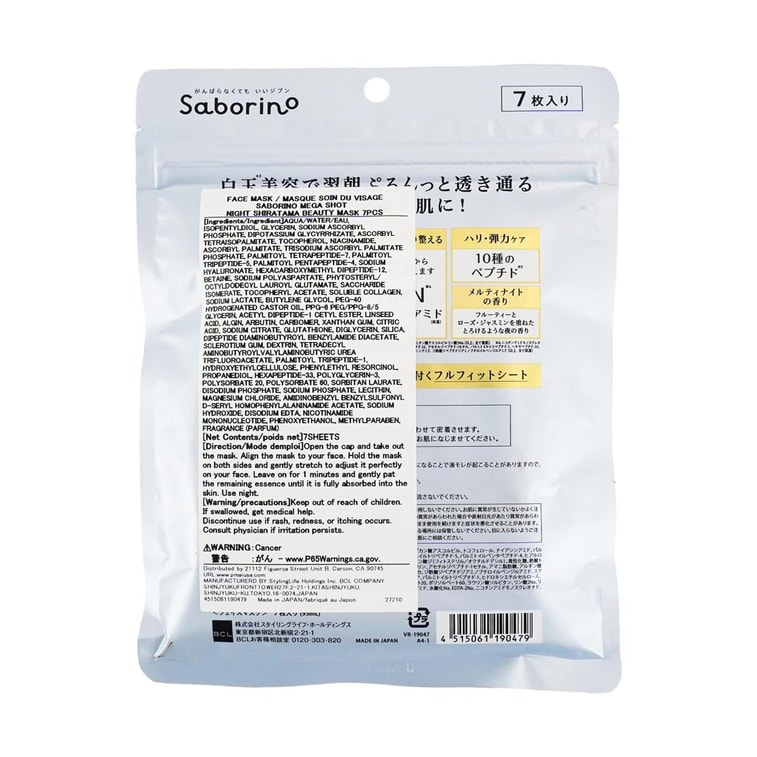 BCL Saborino MEGA-Shot Night Shiratama Beauty Mask, 7pcs | Yami