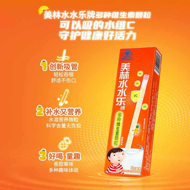 Meilin Water Aqua Vitamin C Children's Multi-Dimensional Nutrition Multivitamin 3.2g*8 Bags *1 Box