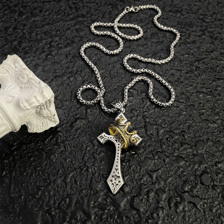Men's Trendy Hip-Hop Personality Ins Street Pendant Necklace With Small Prince Crown Cross 65cm