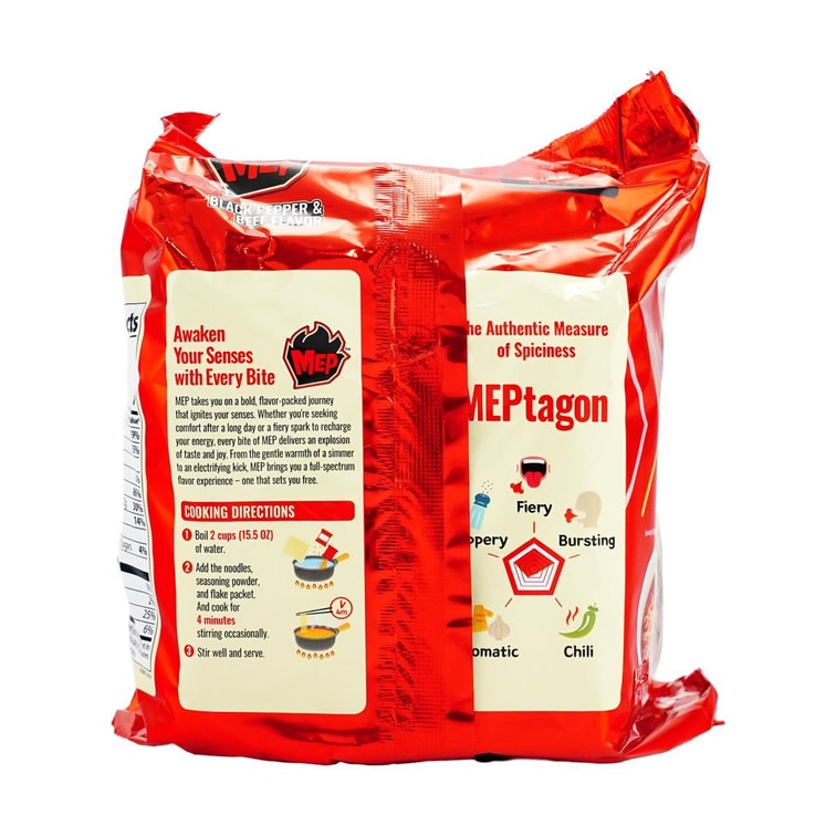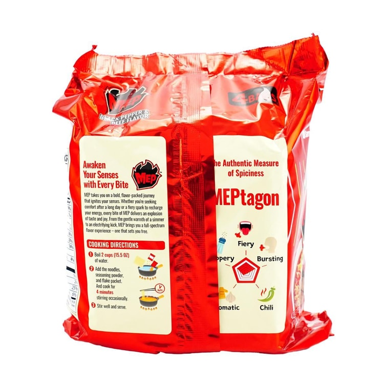 Mep Ramen - New Korean Style Instant Noodles, Black Pepper and Beef Flavor , 4.23 oz* 4 Packs 【New Trendy】
