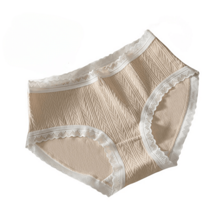 Mid Rise Underwear Lace Edge Breathable Pure Cotton Bottom Crotch Seamless Shorts Light Orange Color One Size | Yami