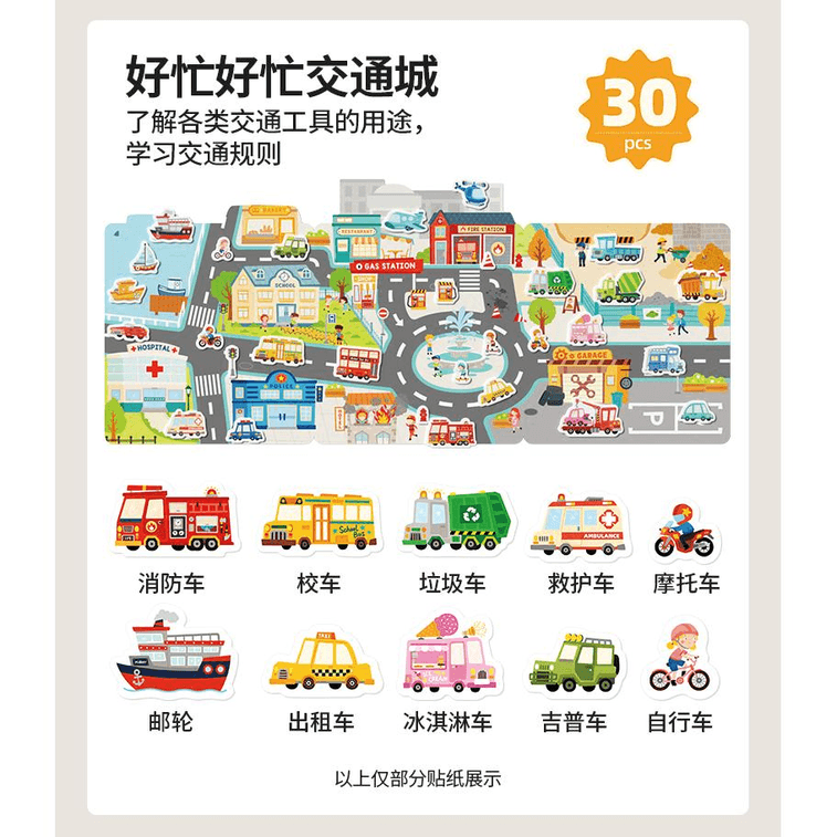 Mideer Milu Children's Handheld Book Sticker Quiet Book Repeatedly Paste Busy Traffic City * 1