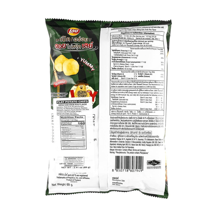 Lay's Thailand Flat Potato Chips Mieng Kam Krob Ros Flavor 2.41 oz | Yami