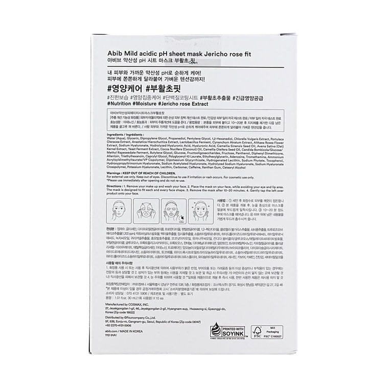 Mild Acidic pH Sheet Mask, Jericho Rose Fit, 10 Sheets*2 - Nutrition & Moisture【Value Pack】