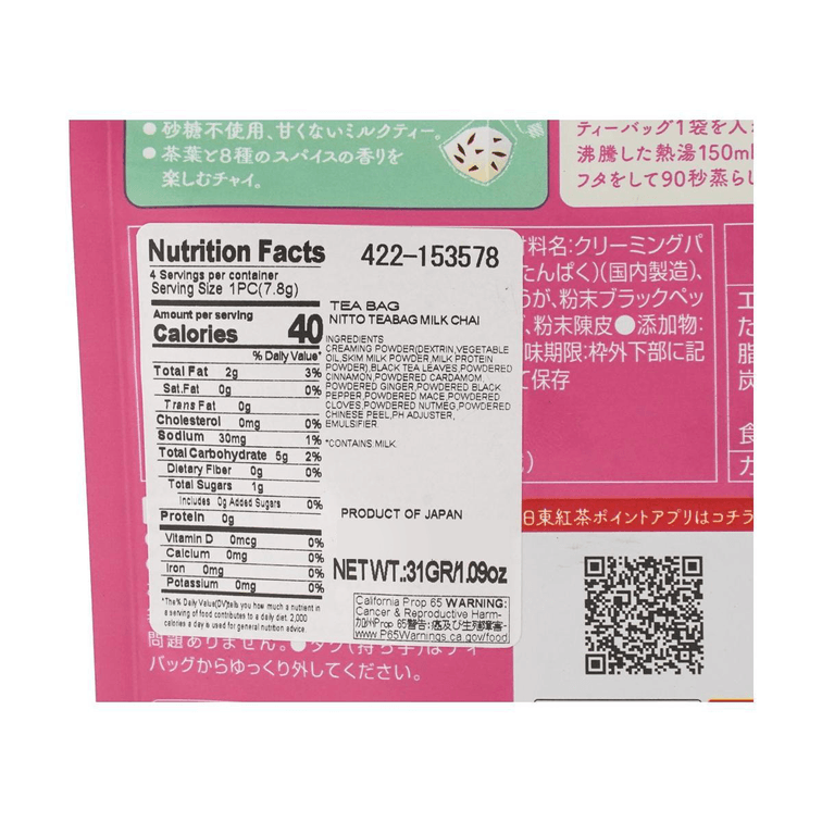 Milk Dissolve Tea Bags Chai Tea Bags 1.09 oz