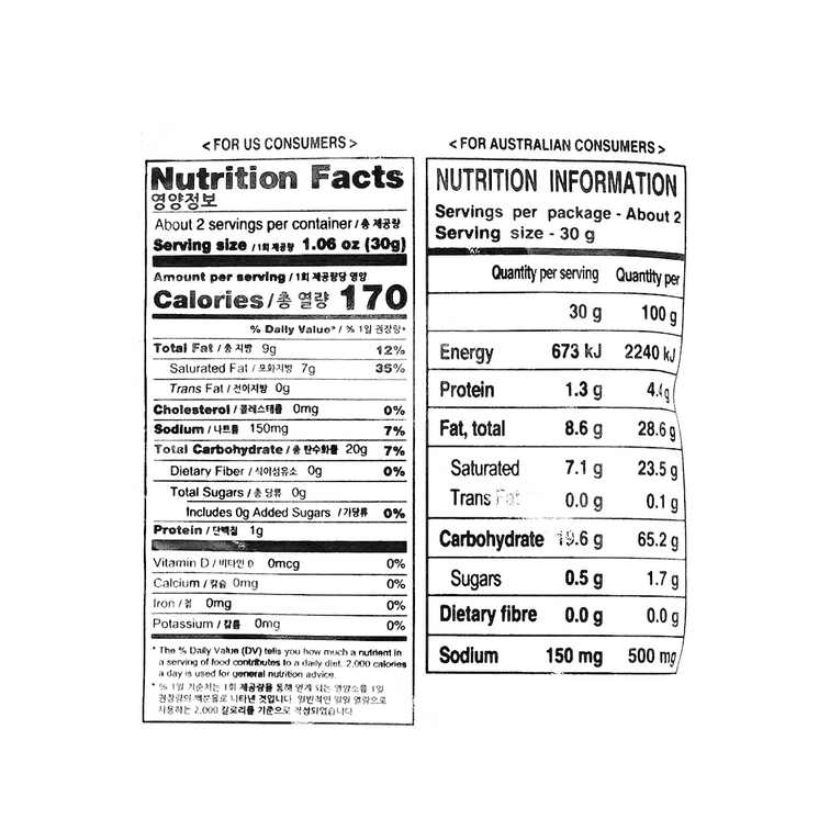 *Disclaimer:Nutrition info is based on product packaging and for reference only. Content may vary due to version, language, or image differences. Please check the actual package. For questions on ingredients, allergens, or suitability, read the label or contact support.