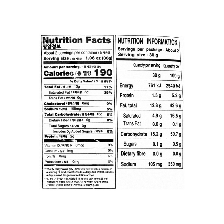 *Disclaimer:Nutrition info is based on product packaging and for reference only. Content may vary due to version, language, or image differences. Please check the actual package. For questions on ingredients, allergens, or suitability, read the label or contact support.