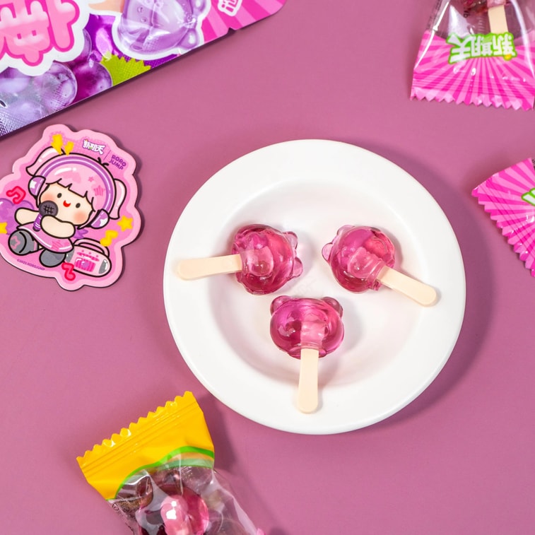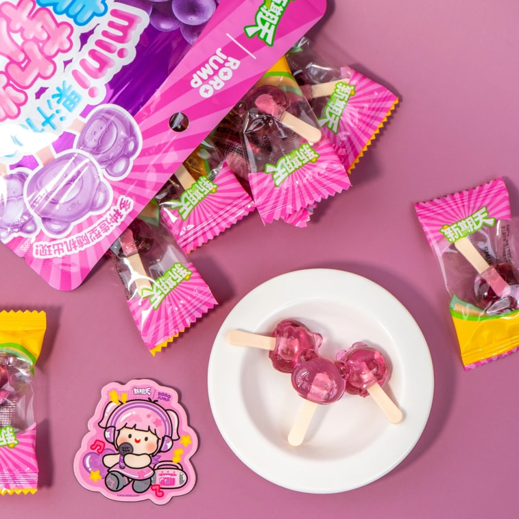 Mini Lollipop Soft Jelly Gummy Candy Grape Flavor 2.82 oz【Randomly Included Refrigerator Magnet】
