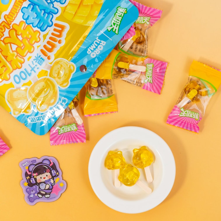 Mini Lollipop Soft Jelly Gummy Candy Mango Flavor 2.82 oz【Randomly Included Refrigerator Magnet】