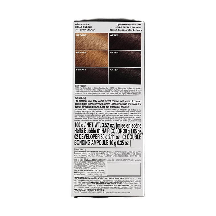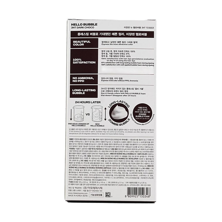 Hello Bubble Hair Dye, Easy Hair Coloring, 3.52oz. #3NT Dark Choco【Aespa, Karina】