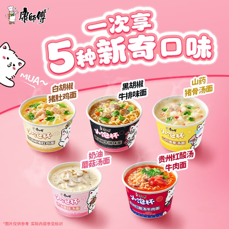 Mini instant noodles 39g * 5 boxes Yam pork bones/cream mushrooms/white pepper/black pepper/spicy and sour beef noodles