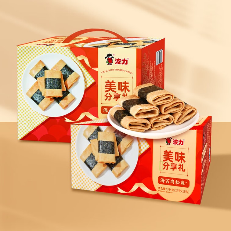 Seaweed meat floss rolls 384g(24g*16 pieces) Nori rolls Egg Rolls Snack Festival New Year Christmas Gift box