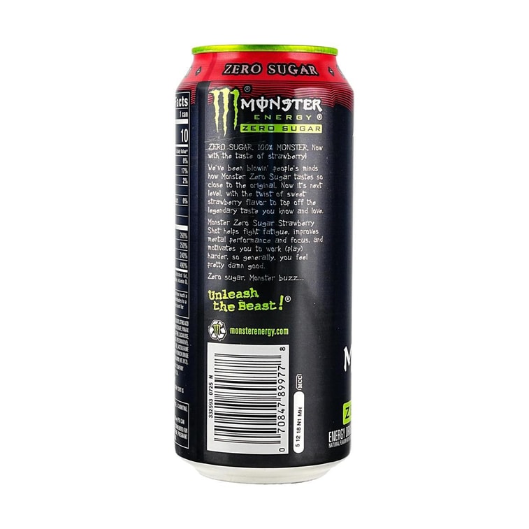 Monster Energy ,Zero Sugar Strawberry Energy Drink ,16 fl oz 【Low Calories】【Limited Edition】