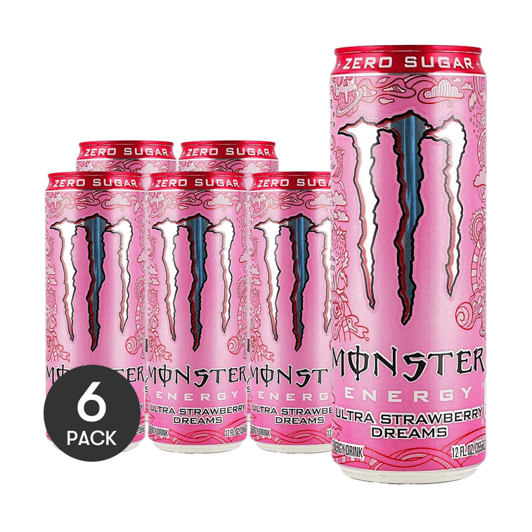 Monster Energy ,Ultra Strawberry Dreams, Zero Sugar Energy Drink, 12 fl oz *6【6 Packs】【Low Calories】