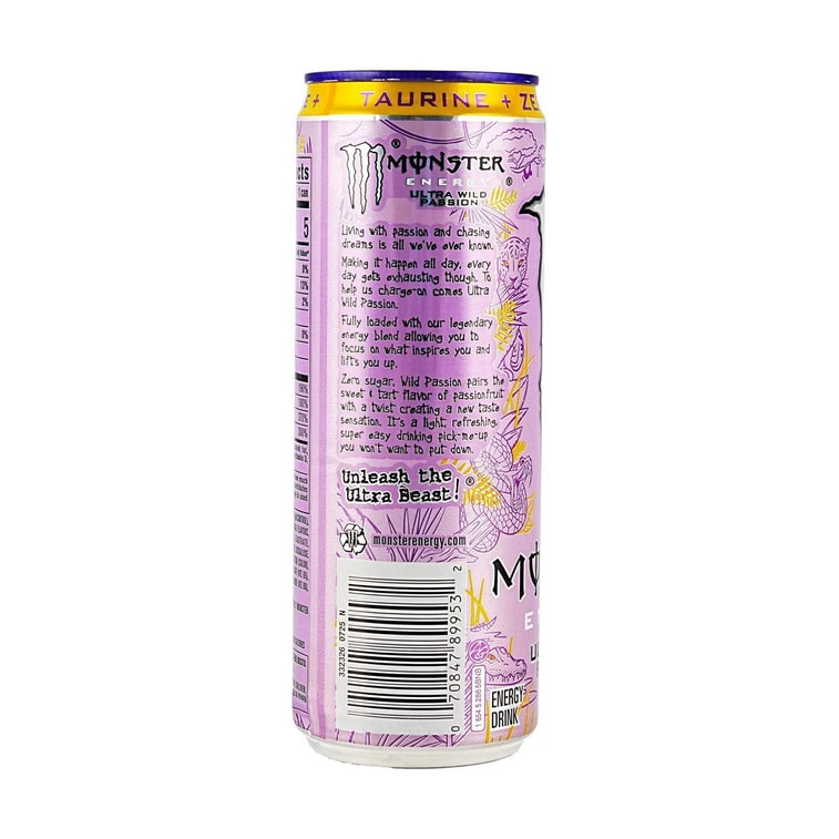 Monster Energy ,Ultra Wild Passion, Zero Sugar Energy Drink, 12 fl oz 【Low Calories】