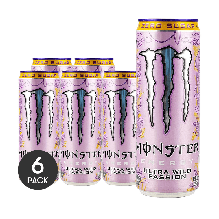 Monster Energy ,Ultra Wild Passion, Zero Sugar Energy Drink, 12 fl oz *6【6 Packs】【Low Calories】