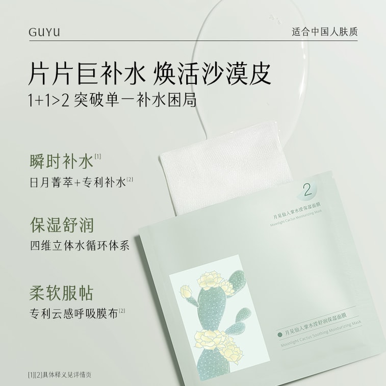 GUYU 【Stock Up & Save - 2 Pack】Moonlight Cactus Soothing Moisturizing Mask (26ml+1.5ml)*5Pcs (Per Pack) | Yami