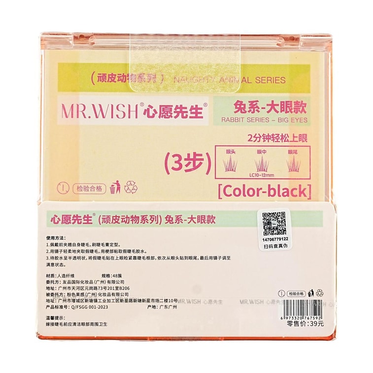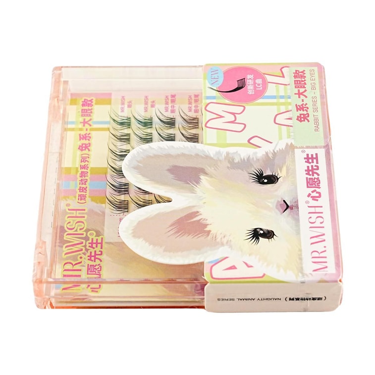 Mischievous Animals Series, Glue-On False Eyelashes LC Curl, 48 Clusters, #Rabbit - Big Eyes