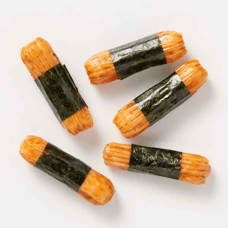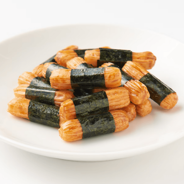 These traditional rice crackers have a spicy soy sauce flavor and a rich seaweed aroma.