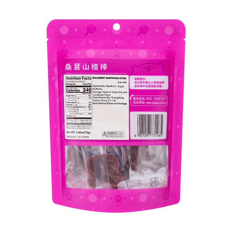Mulberry Hawthorn Fruit Lollipops Candy, 2.47 oz