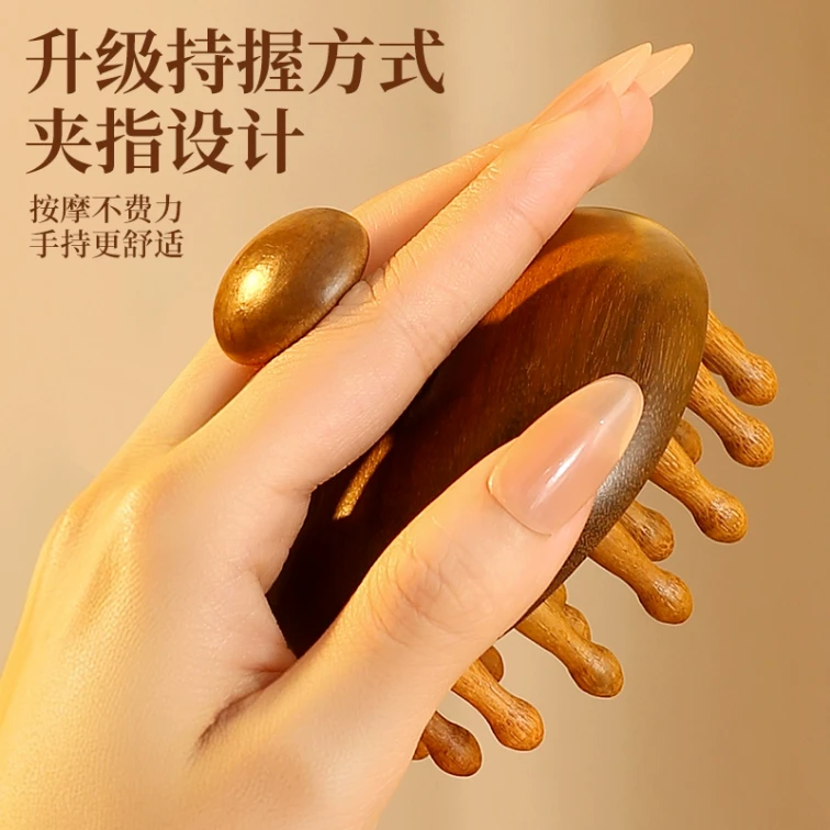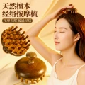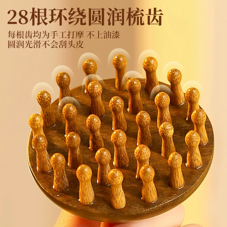 Multi-functional sandalwood round plate massage comb 1 piece scalp meridian comb body detox tool.