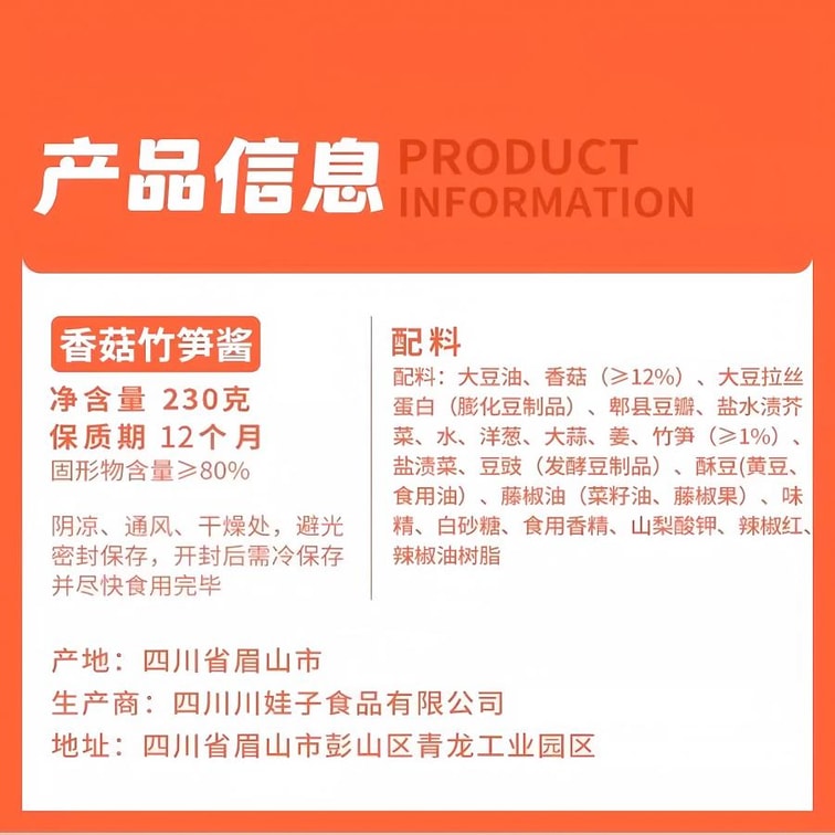 Chuanwazi Shiitake Mushroom & Bamboo Shoot Sauce | 230g | Savory Umami Condiment for Rice & Noodles