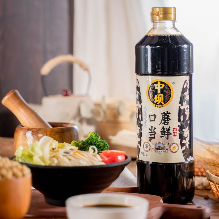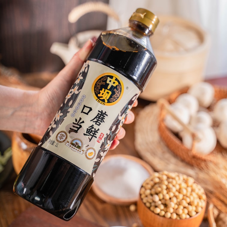 ZhongbaDark Soy Sauce Mushroom Soy Sauce Premium 0 Additives Brewed Reduced Salt Fresh Mushroom Flavor Household Seasoning 1L | Yami