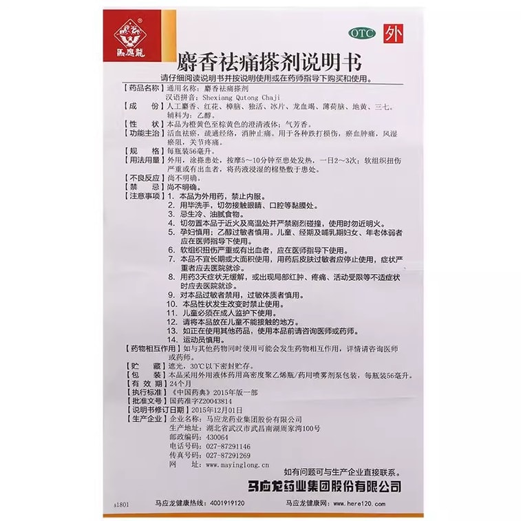 Musk Pain Relief Apply Arthritis Rheumatoid Joint Bruising Pain Relief 56ml/bottle