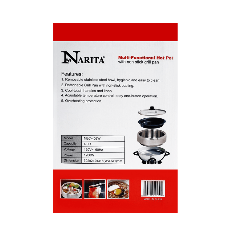 【Low Price Guarantee】Multi-function Hot Pot With Nonstick Grill Pan 4L NEC-402W 1 Year Mfg Warranty, 120V