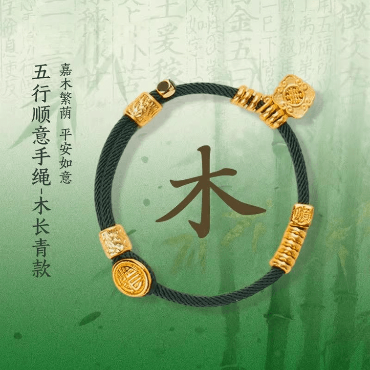 National Library Museum Five Elements Shunyi Hand Rope - Wooden Evergreen Style 23cm