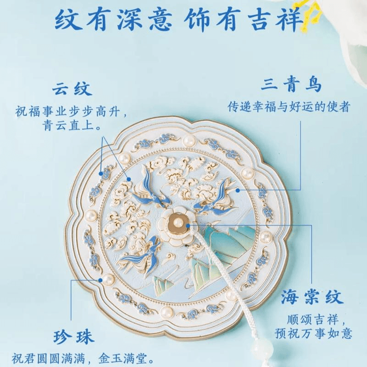 NationalLibrary Bluebird Ninghua Portable Mirror, Cultural And Creative Mirror, Makeup Mirror, Handheld And Portable82mm