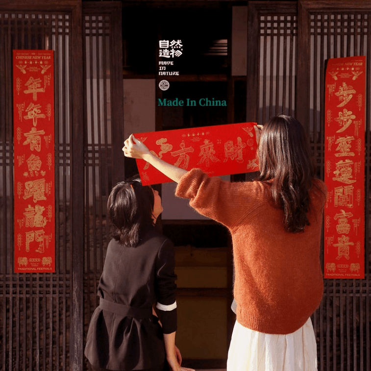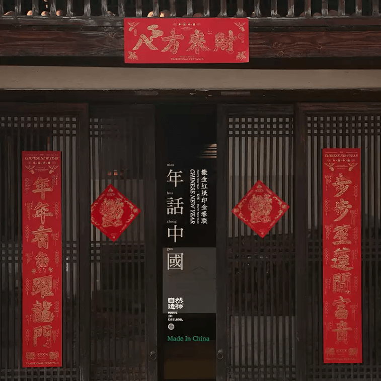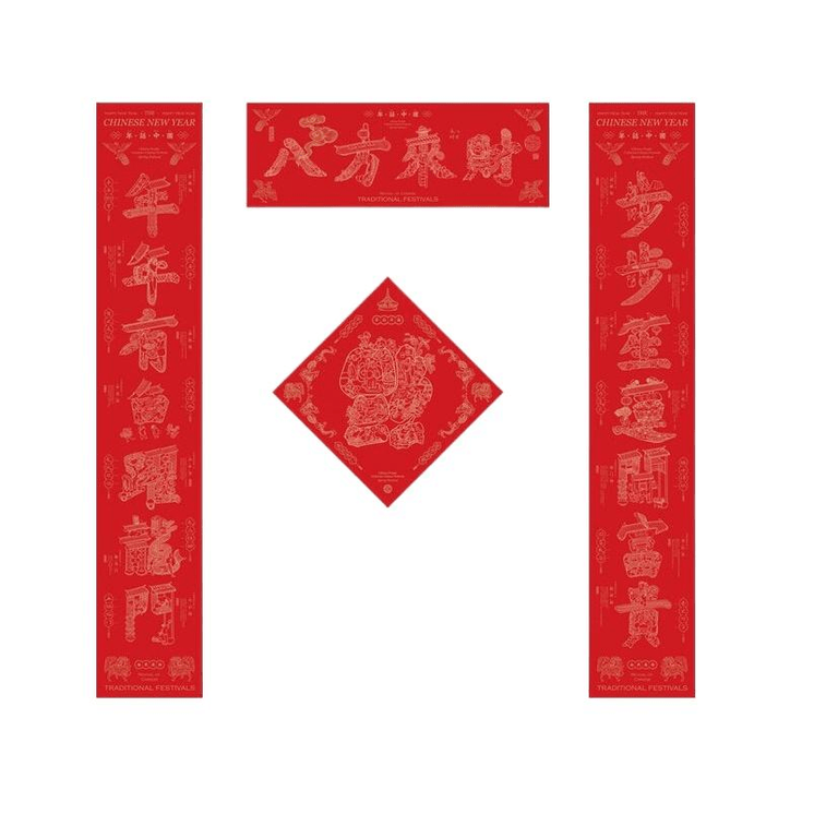 Natural Creation 2025 Spring Festival Couplets With The Word 'fu' On The Door Sticker,Red And Gold Couplets, 1 Set | Yami
