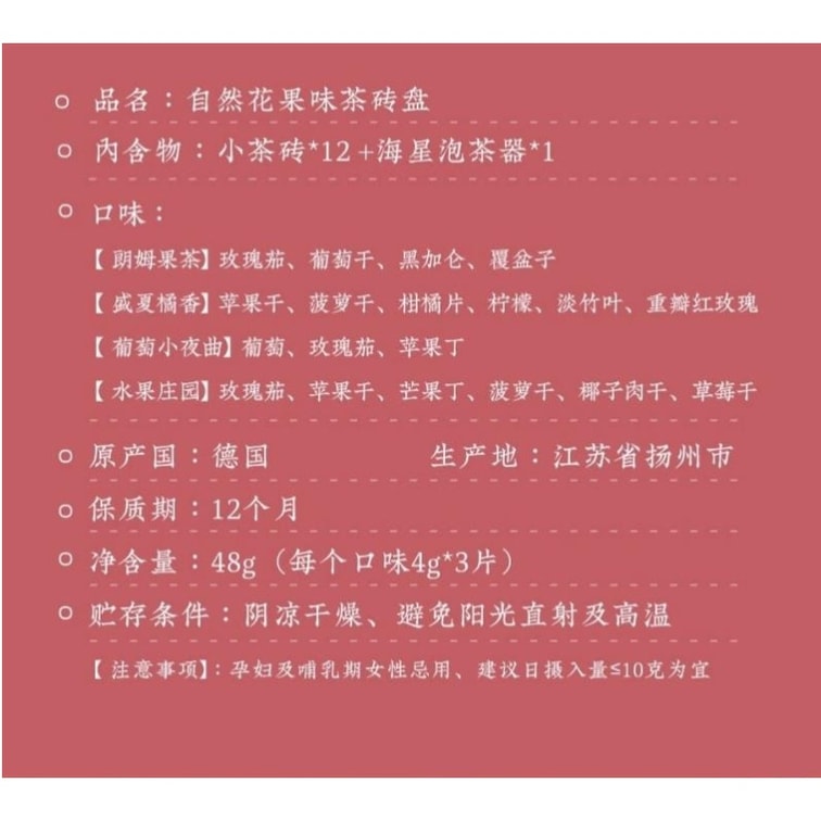 Natural Fruit & Flower Tea Brick Gift Box (48g) - Real Fruit Cold/Hot Brew Birthday Gift