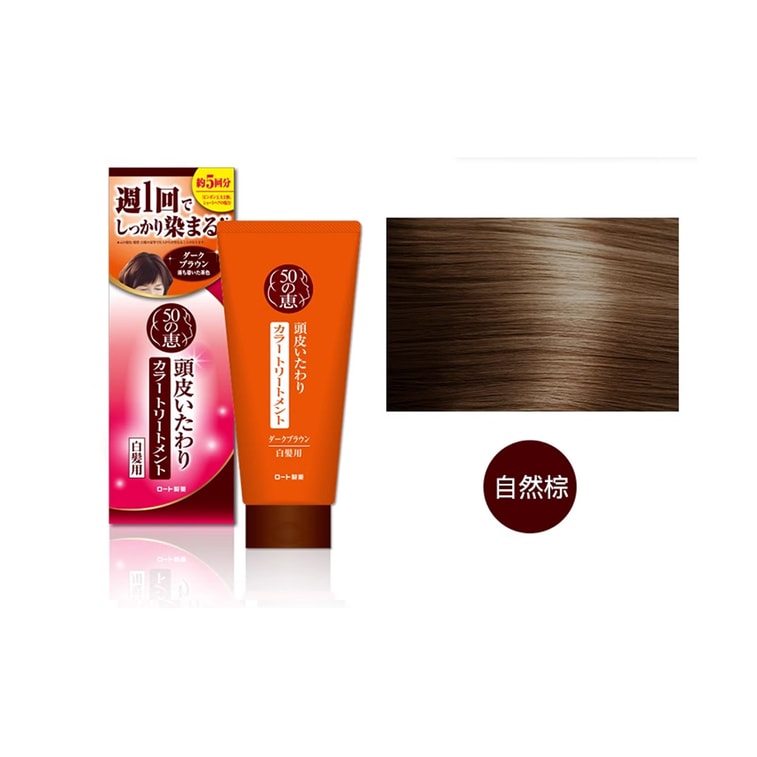 ROHTO 50 Blessings Scalp-Care Color Treatment is a hair care product that helps to nourish and color your hair while also treating your scalp. Brand: ROHTO 50 Blessings Origin: Japan Description: This product is designed to provide a gentle and non-damaging alternative to traditional hair dyes. It is formulated with natural ingredients that help to strengthen and moisturize your hair and scalp, while also providing long-lasting color. Characteristics: ROHTO 50 Blessings Scalp-Care Color Treatment is a gentle and low-irritant product that is suitable for people with sensitive scalps. It contains natural ingredients such as honey and aloe vera, which help to nourish and moisturize your hair and scalp. It is also free from harmful chemicals such as ammonia and peroxide, which can cause damage to your hair and scalp. Usage Methods: To use ROHTO 50 Blessings Scalp-Care Color Treatment, first shampoo your hair and towel dry it. Apply the product evenly to your hair, starting from the roots and working your way to the tips. Leave the product on for 10-15 minutes, depending on the desired intensity of the color. Rinse your hair thoroughly with water, and then dry and style as usual. Precautions: Before using this product, it is recommended that you do a patch test on a small area of your scalp to check for any allergic reactions. Avoid contact with eyes, and if the product does get into your eyes, rinse immediately with water. Keep out of reach of children.